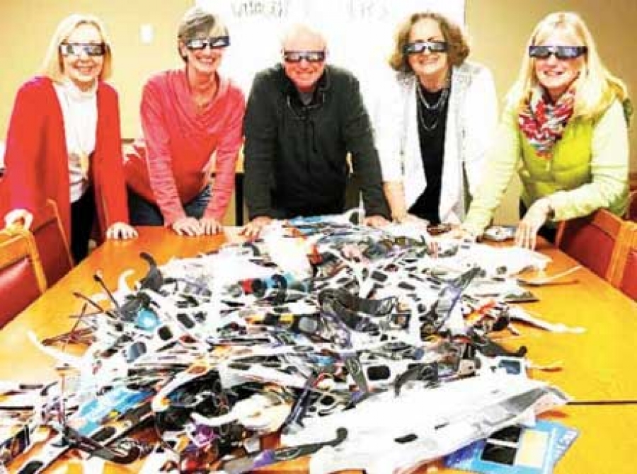 Five members of the Board of the Peggy Crosby Center packaged the eclipse glasses collected for recycling. Approximately 2,000 glasses were contributed to PCC. These used and unused eclipse glasses will be sent to Astronomers Without Borders where AWP will distribute them to schools in South America and southeast Asia for use during the eclipse in 2019.