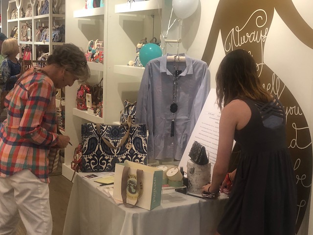 On June 23rd, the Spartina 449 store in Highlands sponsored a “Mermaids for a Cause” Event to benefit Peggy Crosby Center. Supporters, tenants and friends of PCC were invited to the event, that was also open to all visitors who came into the store that day. Shoppers were treated to wine, cheese and fruit while they perused the beautiful Spartina handbags, accessories, jewelry and clothing. The event included a raffle of numerous items donated by Spartina and other Highlands merchants. Spartina 449 offered a discount of 15% on all purchases between 1:00 - 3:00 and donated 10% of these sales to Peggy Crosby.